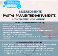 Cartel resumen que corresponde a un seminario organizado el 27 de julio de 2022 por la Asociación de Mutuas de Accidentes de Trabajo (AMAT) del denominado “Módulo Mente” y que incluye un resumen de las “Pautas para Entrenar tu Mente, Reduce tu Estrés y Vive Más Feliz".